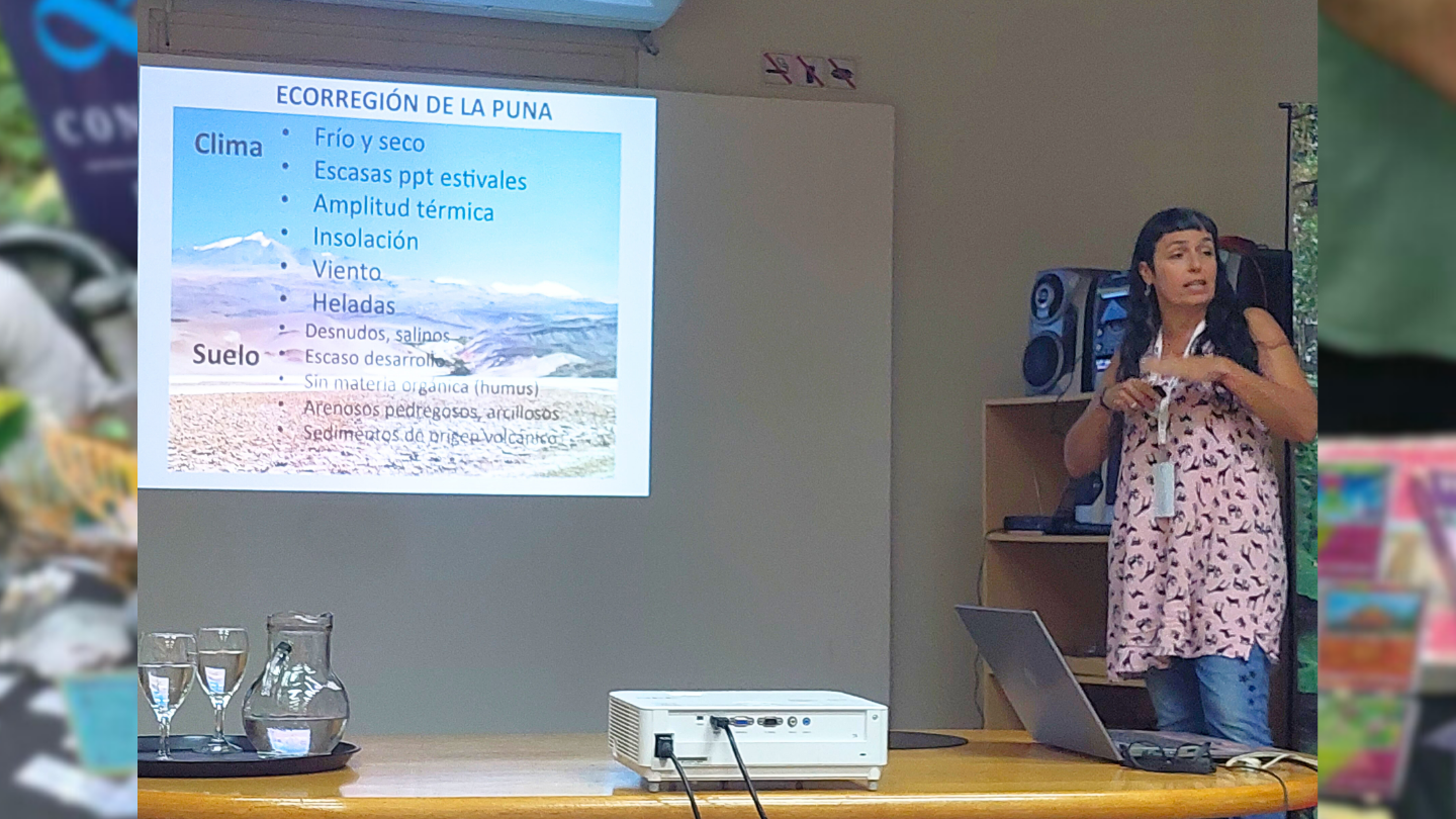 La Dra. Cuello experta en la identificación botánica de especies vegetales a campo, hablo sobre sus trabajos en la Puna Argentina haciendo primero una descripción del ambiente y luego de las especies vegetales endémicas de esa ecorregión. Posteriormente describió la importancia de revalorizar estas especies popularmente usadas como medicinales. En ese sentido puso en valor los trabajos que realizó junto a integrantes de INBIOFIV y que demostraron las propiedades antibióticas, antimicóticas , antiinflamatorias y antitumorales de estas especies. Finalmente hablo de su participación en el proyecto Gloria y de las guías de campo publicadas de ambientes puneños.