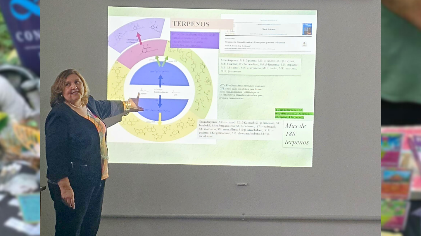 La Dra. Isla disertó sobre las Líneas de Investigación en Cannabis medicinal desarrolladas en la Facultad de Ciencias Naturales a través del INBIOFIV, instituto que actualmente dirige. Hizo un balance del camino recorrido para lograr la aprobación del proyecto de Cannabis medicinal por el Ministerio de Salud de la Nación y la habilitación de INBIOFIV por ANMAT para poder ejecutar el proyecto. Finalmente se explayó específicamente en los avances del proyecto, los subsidios obtenidos y RRHH formados y en formación desde el año 2020 a la fecha.