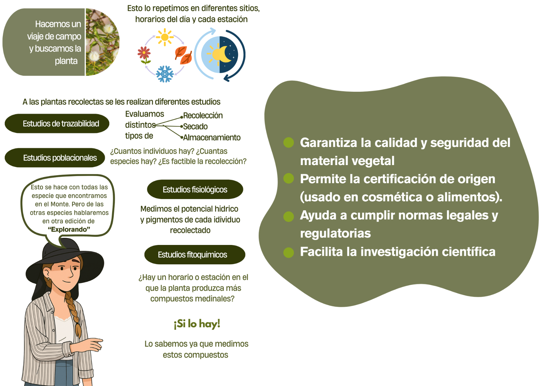 Es como la “historia clínica“ de una planta: registrando desde su nacimiento (dónde y cómo germinó), los cuidados que recibió (riego, fertilización, trasplantes), las intervenciones que tuvo (recolección, poda, procesamiento) y hasta el laboratorio (almacenamiento, secado, distribución o consumo).